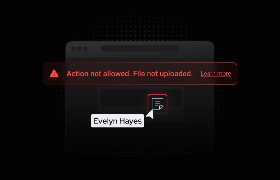 Enforcement happens at the point of action — the click, the paste, the upload. Not in a post-incident log review 24 hours later.